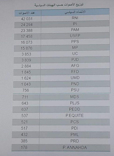 - حزب الحركة الشعبية(محمد لمخنتر) .15876صوتا.