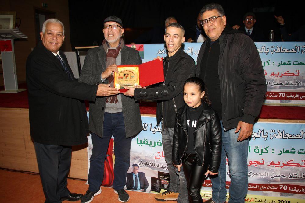 وشكّل هذا اللقاء مناسبة لتكريم نخبة من لاعبي الدفاع الحسني الجديدي، الذين حملوا القميص الوطني وشاركوا في مختلف نسخ كأس أمم إفريقيا، ويتعلق الأمر بكل من مصطفى يغشى ( دورة الكاميرون 1970 )أحمد مػروح " الملقب بابا " ومصطفى فتوي " الشريف ( دورة أثيوبيا 1976 ) ، محمد لكحيلي ( دورة نيجيريا 1980 ) ، عبد اللطيف يقضاني (دورة مكسيكو 1986) ، ادريس اسمار (دورة بوركينا فاسو 1998) يوسف القديوي ( دورة جنوب افريقيا 2013 ) ، الاطار الوطني مبارك بيهي ، والإعلامي بقات " تيلي ماروك " حسن البصري وذلك اعترافًا بما أسدوه من خدمات جليلة لكرة القدم الوطنية، وما قدموه من عطاء وتضحيات أسهمت في تشريف الكرة المغربية قارياً.
