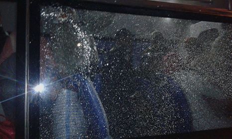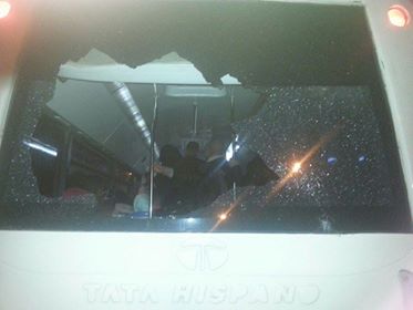 الذي أدى إلى تكسير مجموعة من النوافذ والواقيات الزجاجية للحافلتين، كما تظهر الصور،