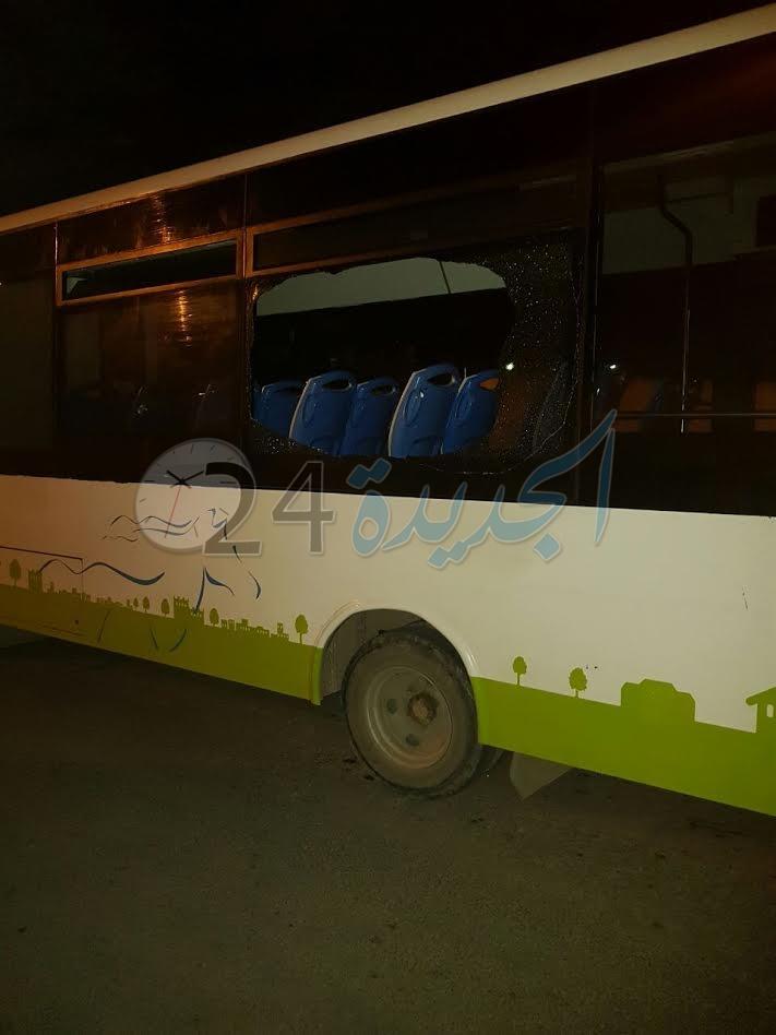 بالجديدة، مما تسبب في تكسير مجموعة من النوافذ والواقيات الزجاجية لهاته الحافلات.