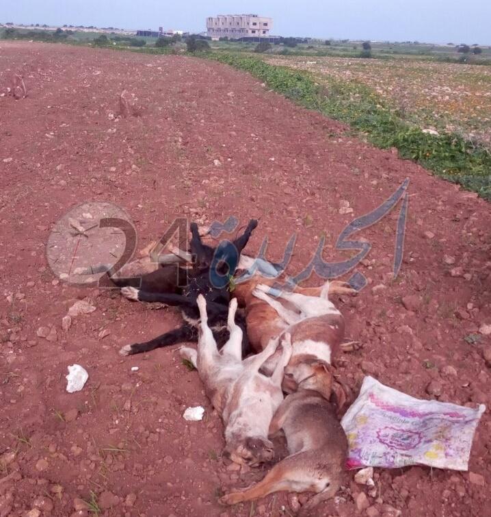 أزيد من 8 كلاب نافقة بعد تناولها للسموم ليتم دفنها في منطقة خلاء يضواحي