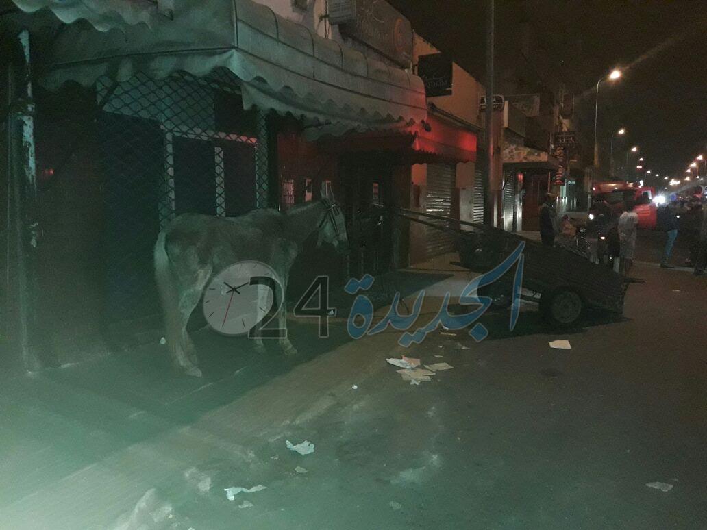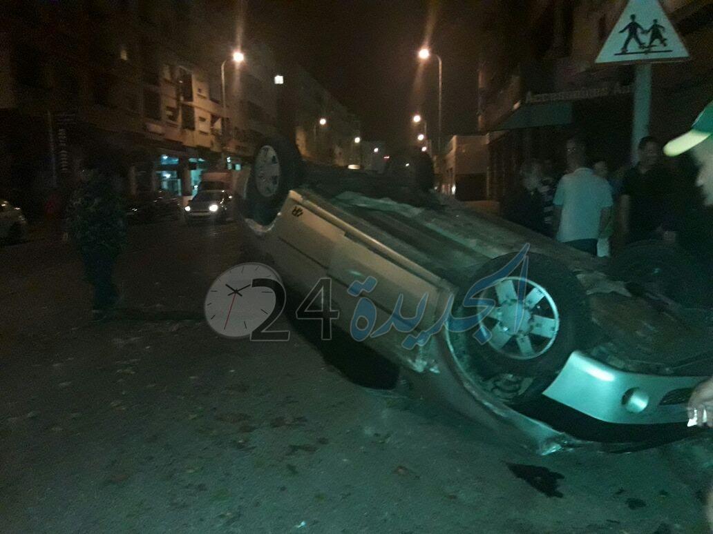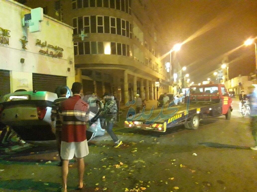 الأزقة المتفرعة عن شارع محمد الخامس ليصطدم بالعربة وتنقلب به السيارة عدة مرات