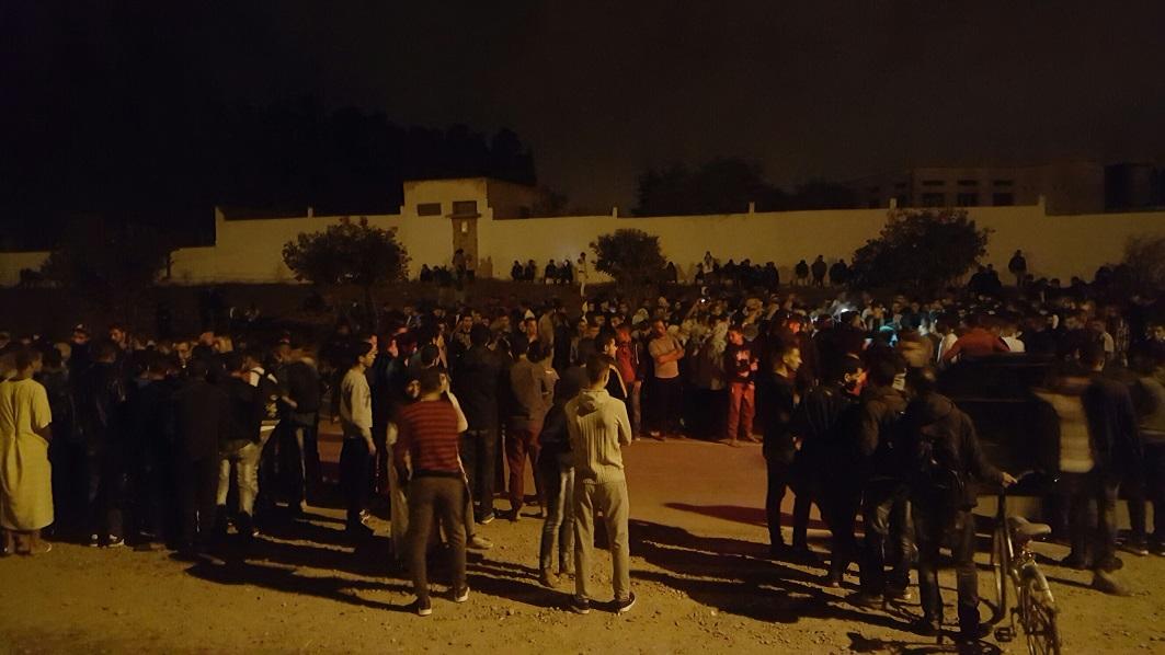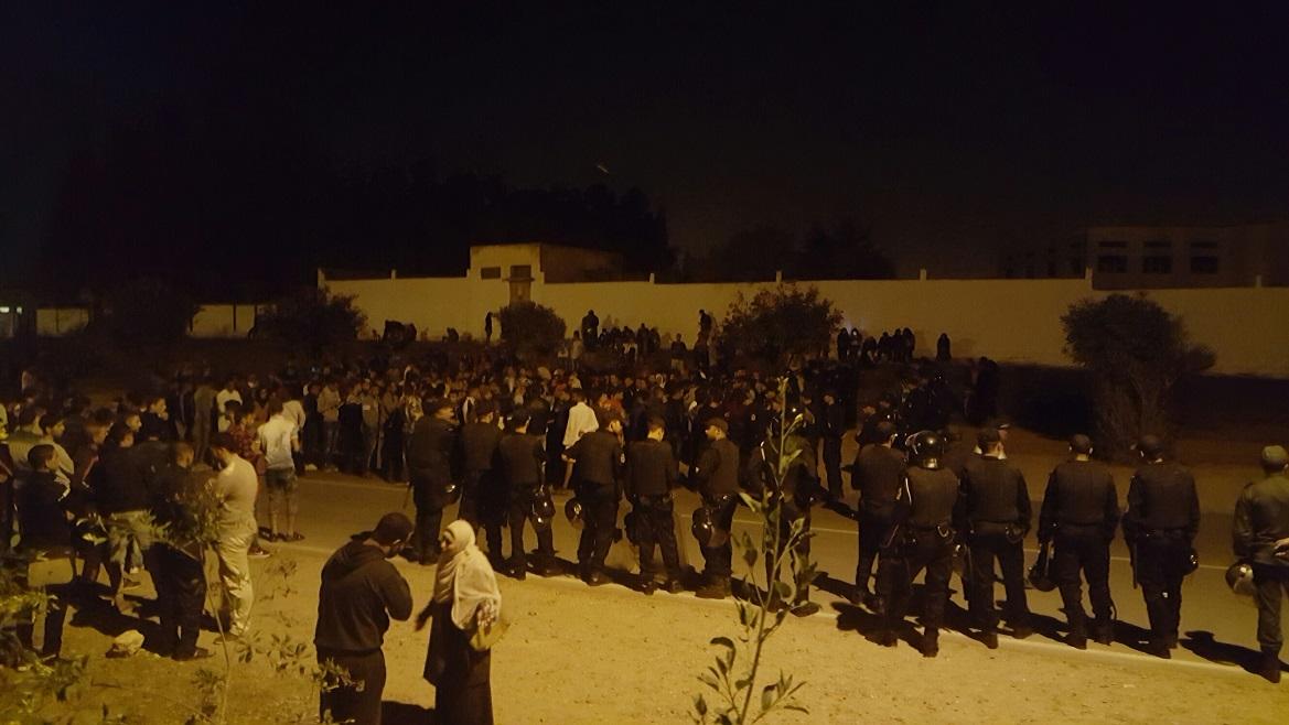 الاحتجاج أمام مقر أمن الجديدة، قبل أن يتجمهروا في الشارع العام، قبالة كلية العلوم، بعد أن قطعت عليهم الطريق تعزيزات