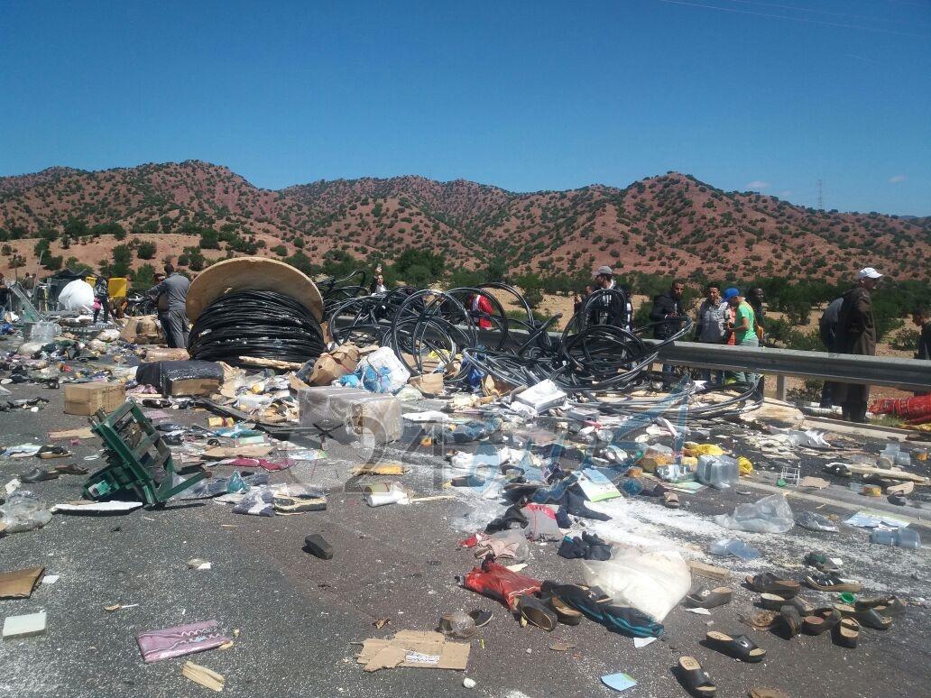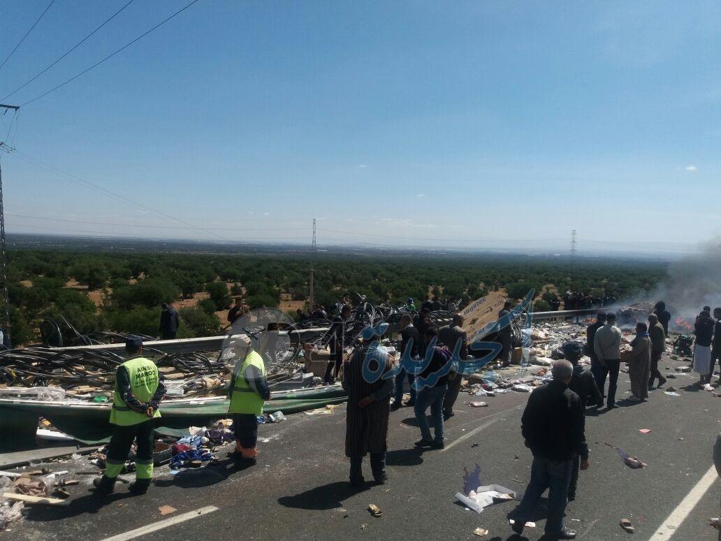 التي وقعت قبل لحظات على مستوى الطريق السيار الرابط بين أكادير ومراكش وتحديدا