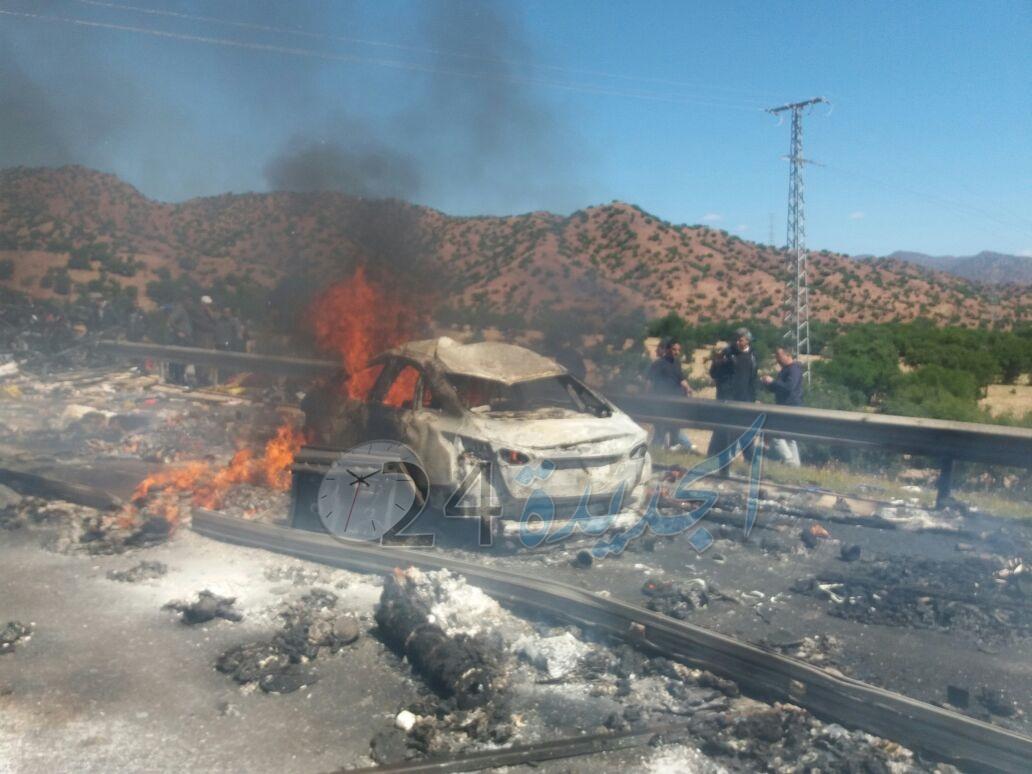 رماد مثيرة الرعب في مستعلي الطريق، مما جعل حركة السير في اتجاه مراكش متوقفة منذ ازيد من 3 ساعات وحتى حدود الساعة.