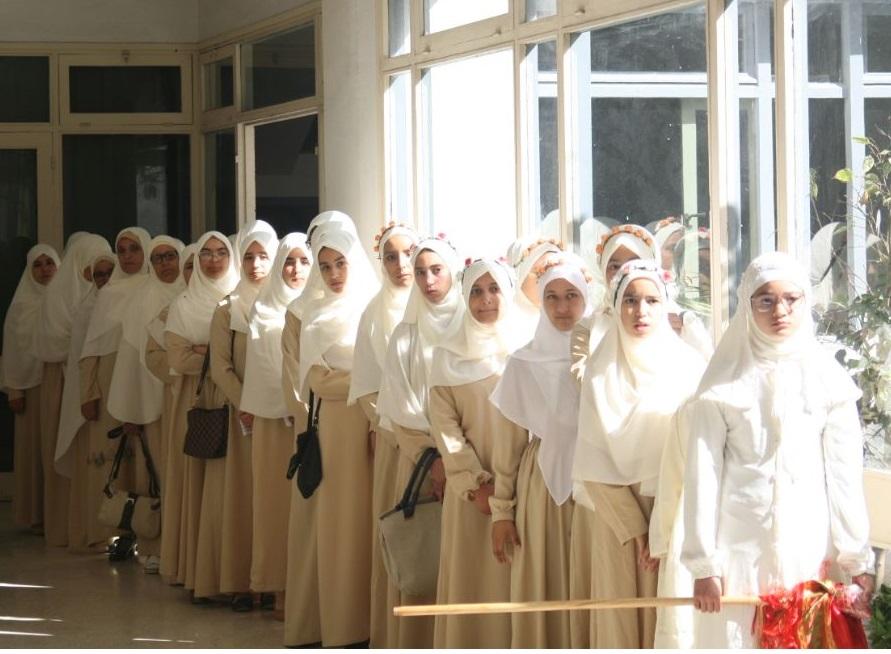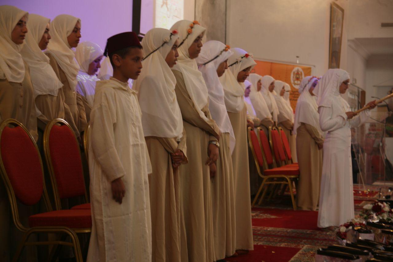 بآيات من الذكر الحكيم بعد ذلك تم استعراض موكب الحافظات المتزينات بجلاليب واغطية