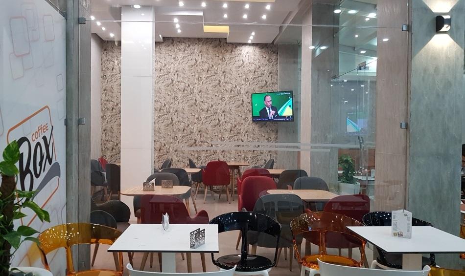مقهى "BOX COFFEE" تم تعزيزها بتجهيزات حديثة وجديدة، وهندسة عصرية ترقى إلى المستوى