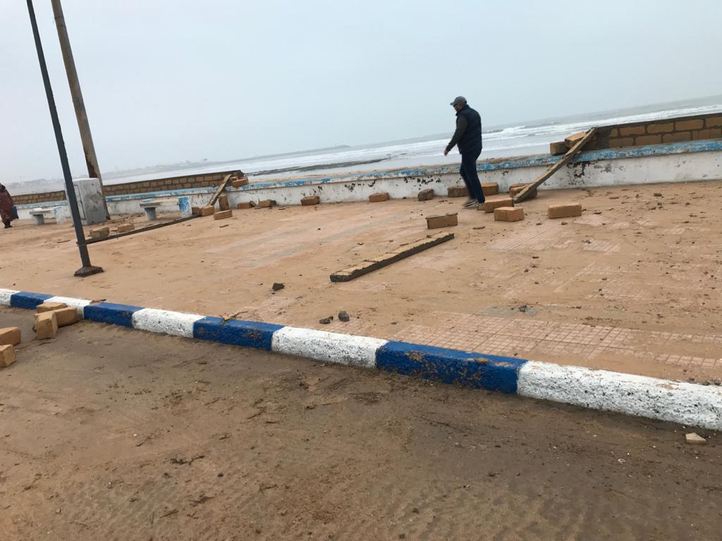 تسببت الأمواج العاتية بسبب سوء الأحوال الجوية، في الساعات الأولى من صبيحة اليوم الاثنين، في هدم سور كورنيش الجديدة.