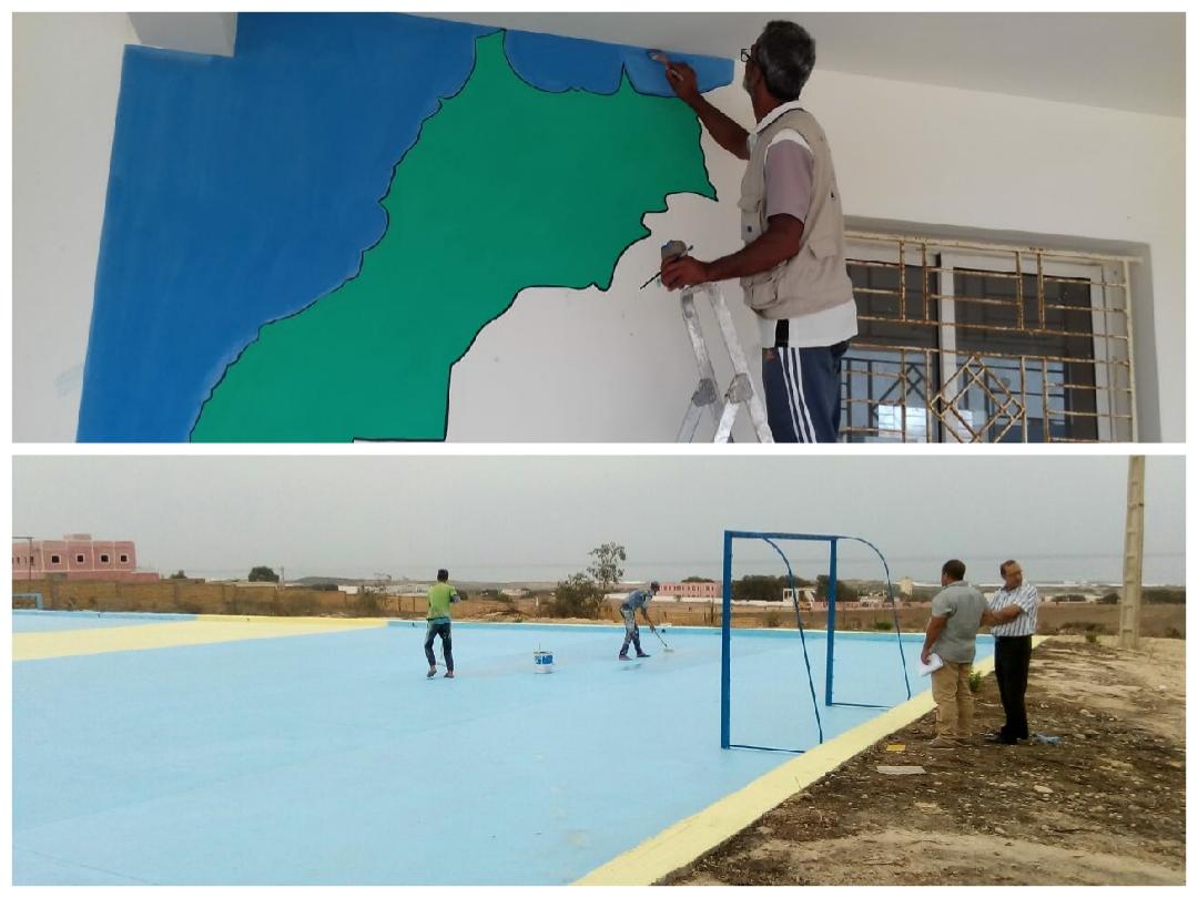 وشملت العملية القيام بحملة تشجير للمدخل الرئيس العلوي للقسم الخارجي وصباغة القاعات الدراسية وواجهاتها الخارجية، كما تم الشروع في الوقت ذاته بعملية إعادة تأهيل القسم الداخلي بصباغة مطبخ وقاعة الأكل وصباغة وتزيين الفضاءات الخارجية للقسم الداخلي بتعاون وتمويل من جمعية الآباء والأمهات لثانوية المسيرة التأهيلية استعدادا لاستقبال تلاميذ وتلميذات المؤسسة خلال إجراء الامتحانات الإشهادية للسنة الثانية باكالوريا في وسط نظيف آمن من الإصابة بالأمراض المعدية وعلى رأسها وباء كوفيد 19. علاوة على تمكين التلاميذ والزائرين لثانوية المسيرة التأهيلية من فضاء جميل جذاب مريح لكل المرتفقين لهذه المؤسسة التعليمية التربوية التابعة للمديرية الإقليمية بالجديدة.
