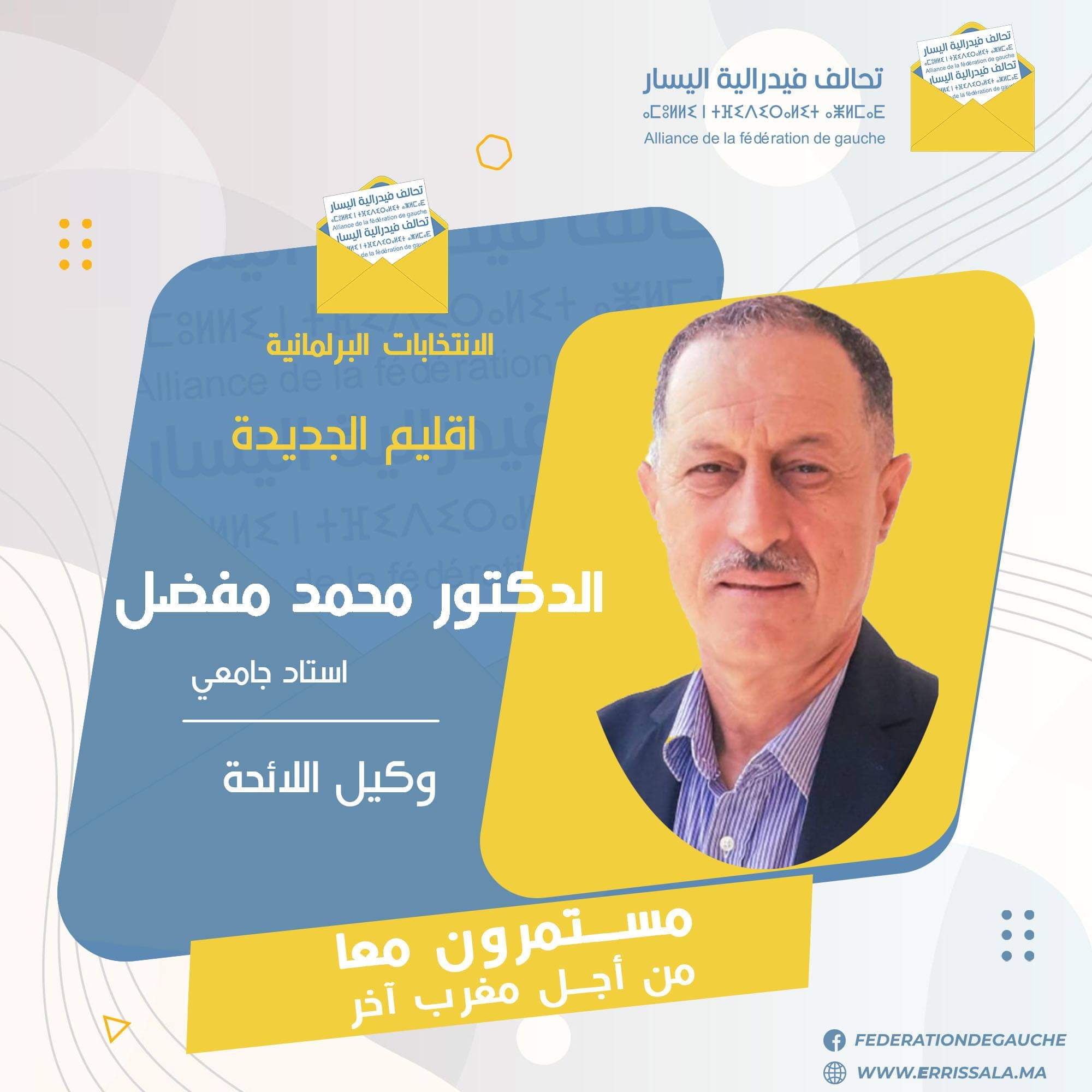 وجدير بالذكر أن تحالف فيدرالية اليسار اختار الأستاذ الجامعي محمد مفضل كوكيل للانتخابات البرلمانية للتحالف بدائرة إقليم الجديدة..