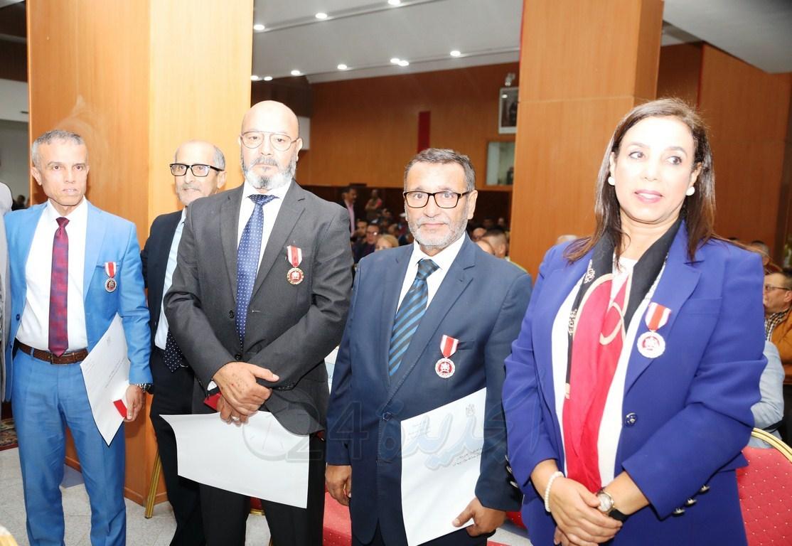 وعلى هامش حفل الإنصات للخطاب الملكي السامي ، أشرف محمد سمير الخمليشي عامل إقليم الجديدة بالنيابة على توشيح عدد من المنعم عليهم بأوسمة ملكية على صعيد العمالة في مقدمتهم محمد العطياوي الكاتب العام لعمالة الجديدة وادعبد الكريم الوهابي الكاتب العام ورئيس القسم الشؤون الداخلية بعمالة الجديدة ومحمد بن فاضة متصرف ممتاز بمصلحة الحسابة بعمالة الجديدة والسيدة سميرة حاريس متصرفة بديوان السيد العامل و جمال الدين بن عامر متصرف ممتاز بقسم الجوازات و الموظف المتقاعد الطاهر حلام مدير سابق للمصالح بجماعة مولاي عبد الله.