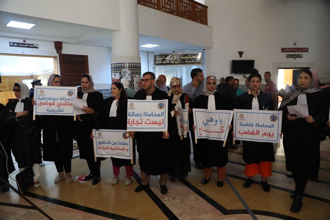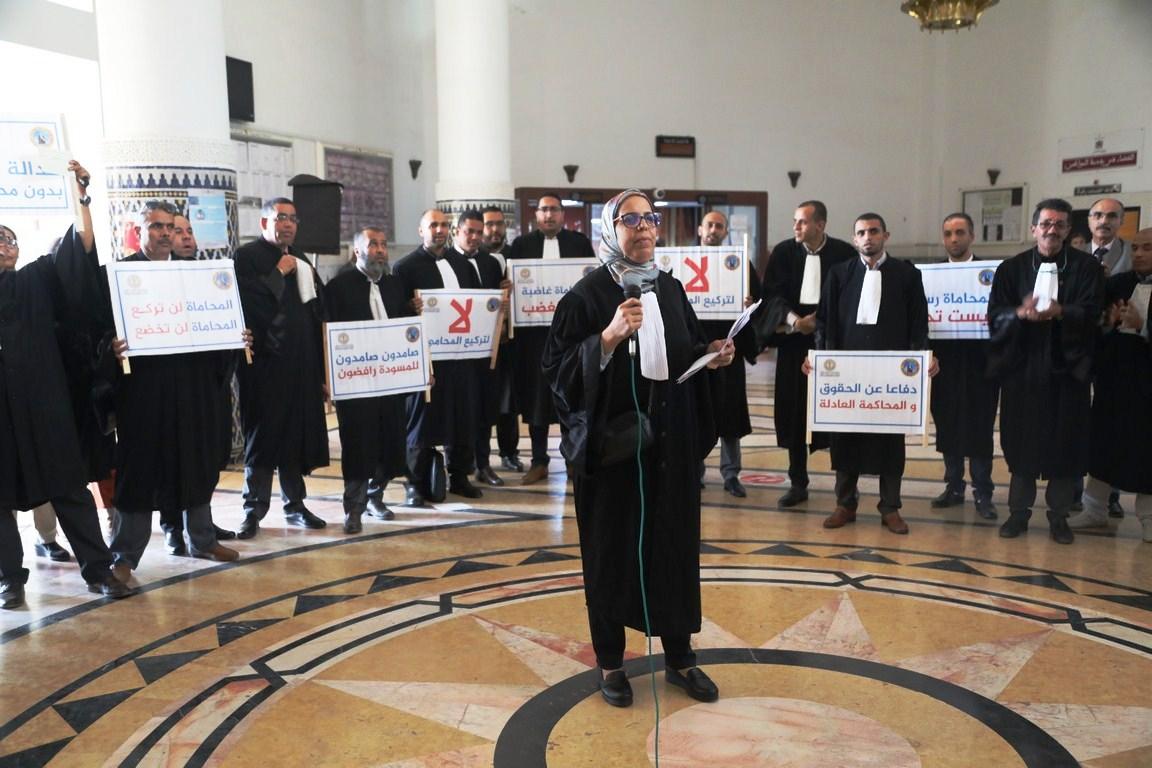 جاءت الوقفة بعد الاجتماع الذي عقده مجلس هيئة المحامين بالجديدة في