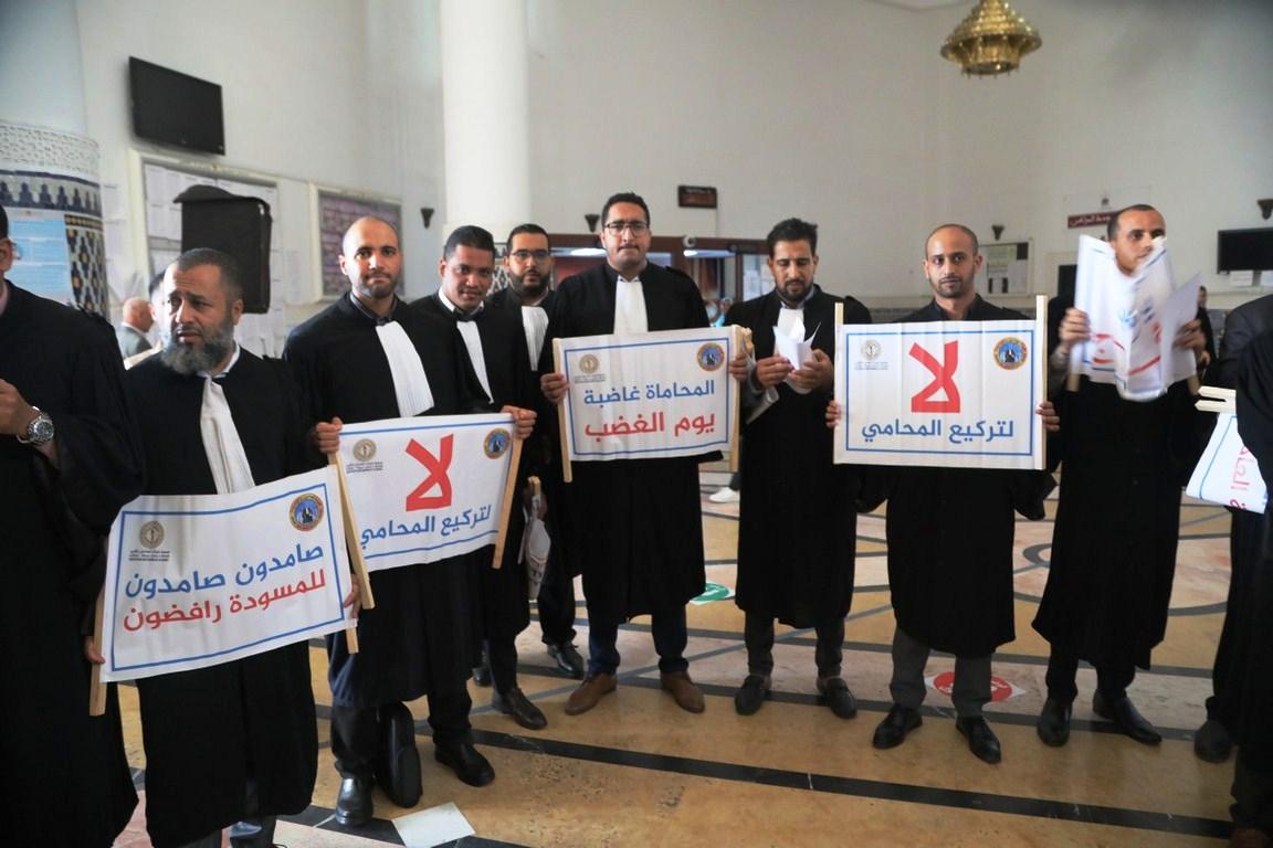 لترديد الشعارات ضد الحكومة، تعبيرا عن رفض المحامين بعض مضامين مشروع قانون