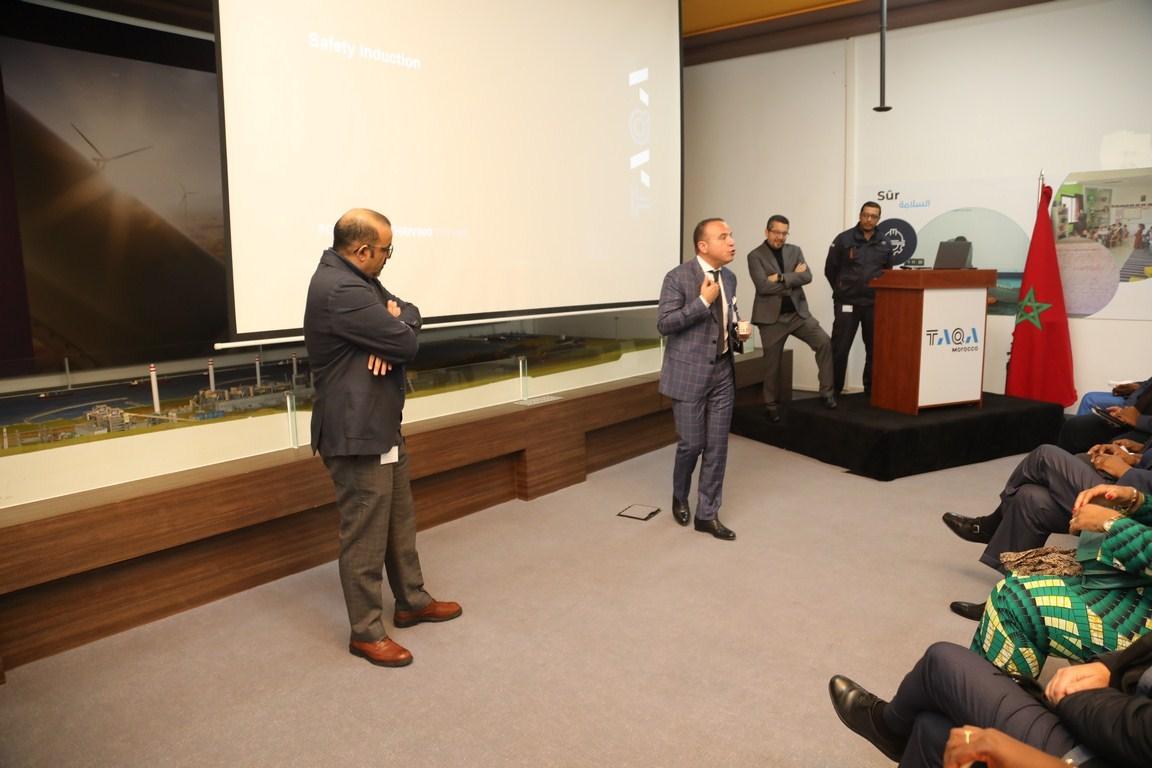 بعدها انتقل الوفد إلى كل من محطة إنتاج الطاقة الكهربائية بالجرف الأصفر " MORROCO TAQA " ، حيث كان في استقبال الوفد كل من السيد لحسن ملزومي المدير بالمحطة الحرارية بالجرف الأصفر، والسيد يوسف النشاشيبي مدير السلامة والوقاية والسيد المهدي بلغيثي مدير قطب الإنتاج وهشام مومني مدير الوحدتان 5و6، حيت اطلع الوفد على مراحل إنتاج الطاقة الكهربائية بالجرف الأصفر.