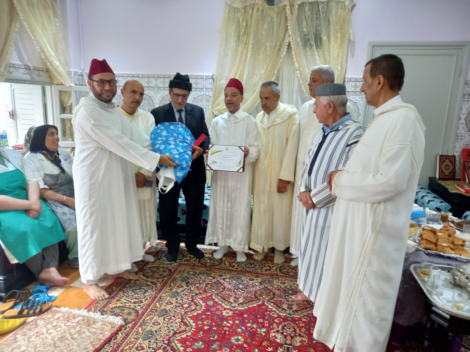 وقد حضر هذا الحفل كل من السيد رئيس المجلس العلمي المحلي للجديدة، والسادة أعضاء المجلس، والسيد مندوب الشؤون الإسلامية بالجديدة، والسيد ناظر الأوقاف بالجديدة، وجمع من المحسنين والمحسنات.