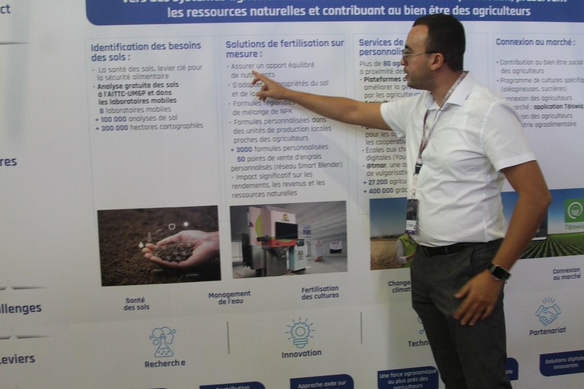العرض الأول الذي قدم للصحفيين يتضمن البرنامج الذي أطلقه المجمع الشريف للفوسفات بالمغرب، برنامج " المثمر لخدمات القرب" ، وهو آلية جديدة تستهدف دعم الإنتاج الزراعي، من خلال توفير خدمات تقنية واستشارية للفلاحين في مجال اختيار المخصبات والزراعات الملائمة لحقولهم ، من خلال عروض شخصيا ل 27200 فلاح و 400 000 من خلال حلول رقمية ، نحو نظم زراعية شاملة ومستدامة تحفز الإنتاج وتحافظ على الموارد الطبيعية وتساهم في رفاهية المزارعين في هذه النظم .