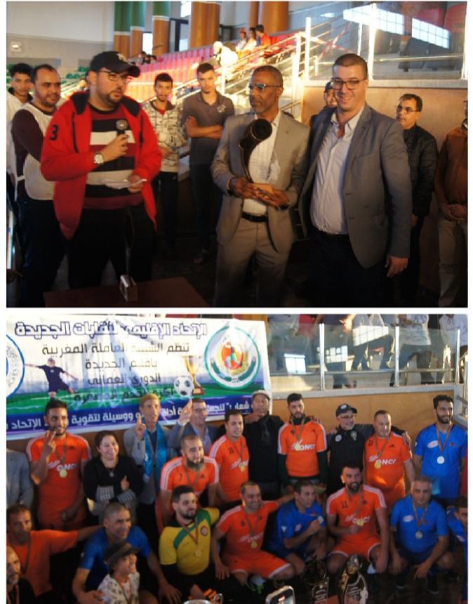 أسدل الستار على الدوري العمالي المنظم من طرف الشبيبة العاملة المغربية بإقليم الجديدة و الاتحاد الإقليمي لنقابات الجديدة باجراء المقابلة النهائية التي جرت أطوارها الجمعة 08 دجنبر الجاري، بقاعة الرياضات محمد الفاسي،بوسط الجديدة بين فريقي السككيين و النادي الرياضي للكهربائيين بالجرف الأصفر..