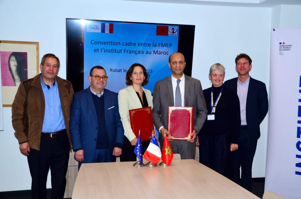 تم، صباح أمس الخميس، التوقيع على اتفاقية شراكة وتعاون، بمقر المعهد الفرنسي بالرباط بين الفيدرالية المغربية للتكوين المهني الخاص والمعهد الفرنسي بالمغرب.