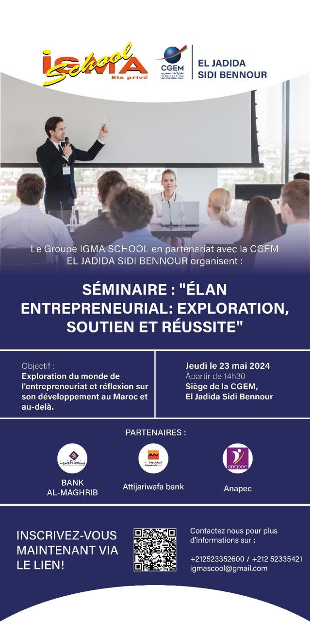 الجديدة سيدي بنور ندوة تحت عنوان: " زخم ريادة الأعمال: الدعم والنجاح" "Élan Entrepreneurial :soutien et réussite " بقيادة مديري ANAPEC ودار المقاول وبنك