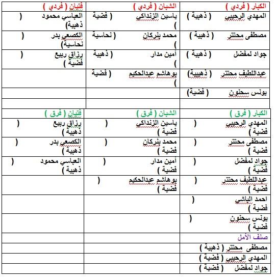 و فيما يلي اسماء أبطال النادي الفائزين في البطولة الجهوية و التي ستخول لهم المشاركة في نهائيات البطولة الشطرية التي ستقام بمدينة مراكش الأحد المقبل إنشاء الله .