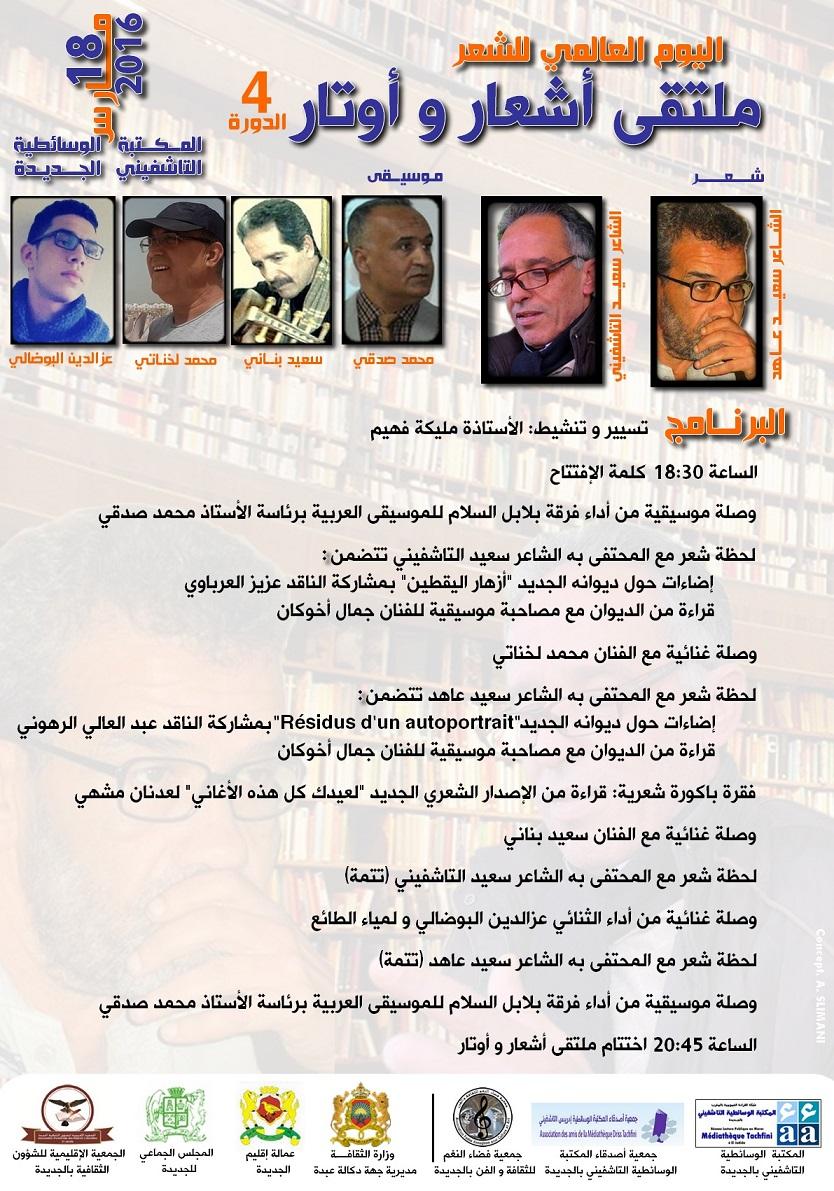 و الفن بالجديدة تحت إشراف المديرية الجهوية للثقافة لجهة دكالة عبدة،"ملتقى أشعار